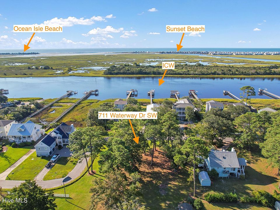 PRIME LOCATION! This gracious vacant lot offers a rare opportunity to build your dream home just one row back from the Intracoastal Waterway (ICW). Located in a peaceful and well-established coastal neighborhood at Sunset Beach, NC, the homesite provides partial water views and easy access to the scenic waterway, ideal for boating, kayaking, or simply enjoying serene coastal living. Generously sized at almost ½ acre, the mostly level and cleared corner lot requires minimal site prep for your custom built seaside retreat. Easy access down the paved, dead-end road with low traffic provides quiet & tranquility. Utilities are available at the street, no HOA, and water views makes this a prime location! Build close to the water without the premium waterfront price. Just steps from the ICW and close proximity to Sunset Beach, Ocean Isle Beach, public boat ramps and local businesses makes this spot hard to beat. You can even drive a golf cart to the Sunset Beach Concerts & Markets in the waterfront Park. Don't miss this opportunity!