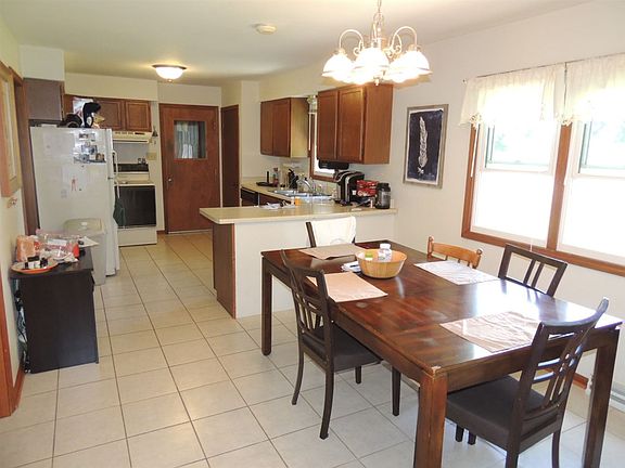 2 bed 1 bath home located on the very edge of the city limits. Newer roof, siding and windows. Tile flooring through large kitchen & dining area. Spacious bathroom with a spot for main floor laundry. L shaped living room with wood fireplace and patio doors leading to rear deck over looking spacious and private back yard. COME SEE!!