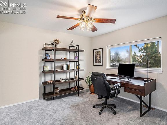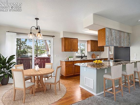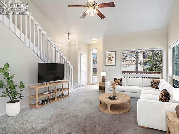 Spacious, welcoming townhome located minutes from downtown Woodland Park, Colorado. This townhome sits on the end with additional windows overlooking the courtyard for plenty of sunshine. The large living room with vaulted ceilings and gas fireplace makes entertaining easy and enjoyable with friends and family. The dining area walks out to the private deck and fenced backyard with trees and plenty of room for planting flowers. The newly updated kitchen with gorgeous hand-picked granite countertops adds a luxurious touch. A half bath and laundry room with sink and built-ins are located off the kitchen with access to the garage. The upper-level primary suite offers a walk-in closet and a beautiful large bathroom. Views of Pikes Peak can be seen from the second bedroom and full bathroom on the upper level. There is an open loft with its own closet overlooking the main floor perfect for a bonus room, office or guest bedroom. The finished basement boasts a family room, a third bedroom, and full bathroom. There is plenty of storage space in the basement including under the stairs. There is plenty of outdoor area to enjoy and extra parking available for guests. You'll enjoy dining, shopping, entertainment, hiking trails and everything that Woodland Park has to offer!