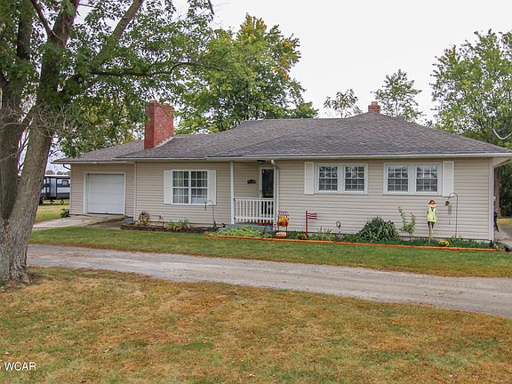 Elida School District! This ranch home features hardwood floors, a wood-burning fireplace, an eat-in kitchen, and a formal dining room. All rooms include ceiling fans for optimal efficiency. Convenient main-floor laundry with additional washer and dryer hookups in the full basement. Cedar-lined closets add a touch of quality storage. Attached garage plus an oversized two-car garage measuring 31x22 feet with 9-foot garage doors provide excellent space for vehicles or a workshop. Enjoy the spacious backyard with a large patio, perfect for relaxing or entertaining.
