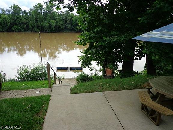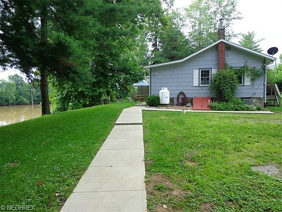 Vacation year round at this lovely riverfront home. Relax on the enclosed porch and enjoy a morning cup of coffee while enjoying the wonderful views of the Muskingum river. The newer windows give you great views from every angle. A well appointed kitchen area offers a great place to gather with friends. Updated bath with laundry area. The warm and inviting living room offers a cozy place to unwind. This 2 bedroom bungalow has a lot to offer. Newer furnace with central air. Outside is a large pole building to house your boat in the off season. This home also comes with a newer dock and a pontoon boat that is ready for the water. All this for one price. Schedule your showing today for a family retreat that could bring years of happiness.