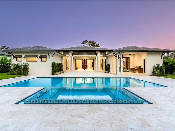 Stunning new one-story contemporary estate on a 33,000 SF lot in coveted Glenvar Heights! This 5-bed + office, 5-bath home features soaring ceilings upon entry with an open, light-filled layout, and seamless indoor-outdoor living. The gourmet kitchen boasts custom cabinetry, elegant millwork, Taj Mahal quartzite countertops, and Thermador appliances; adjacent to your large family room overlooking your backyard. Enjoy a private oasis with a 20x40 pool, covered terraces, and summer kitchen - perfect for entertaining. The primary suite offers a spacious bedroom with seating area, two walk-in closets, and a spa-like bath with dual water closets. 3 car garage. A rare opportunity to own a brand-new residence offering exceptional craftsmanship, scale, and style. Glenvar Heights gem!