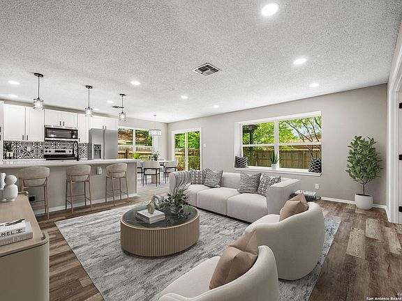 This is the home you've been searching for! TURNKEY AND PRACTICALLY BRAND NEW! Owner spared no expense in renovating this GORGEOUS home! Opportunity to live in the highly coveted 78249 zip code for less than $280k or an Investor's Dream Property with minimal maintenance! Open Concept Design with Flexible Floor Plan offering 4 Bedrooms, or 3 Bedrooms & Dedicated Office, 2 Baths & 2 Car Garage. New New New! New Roof, HVAC, Water Heater including transferrable warranties. All New Windows! New Exterior & mostly New Interior Doors. New Cabinets & Quartz Countertops, throughout; New Appliances. All New Kitchen also includes Floor to Ceiling Pantry, 9' Island with Seating & Charging Station, Stylish Backsplash & Eat In Kitchen. All New Bathrooms include Toilets, Tub, Walk In Shower, Mirrors, Lights, Exhaust Fans, Plumbing Fixtures, Tile. Primary Bath showcases Oversized 2'x4' Shower Wall Tile & EpicClean, antimicrobial Porcelain Flooring. Primary Bedroom extends the Bath with a Custom Built, Moveable (allowing for versatile placement) Make Up Vanity with Touchscreen Mirror. Recessed, dimmable LED Lights in Kitchen & Living Room; Bedrooms feature New Remote Control Ceiling Fans. All New Electrical & Plumbing Fixtures, throughout. New Luxury Vinyl Plank flooring in all living areas. New Smoke Alarms, All New Hardware including Door Knobs & Hinges, Door Stops, Doorbell, House Numbers. New Interior & Exterior Paint. Separate Laundry Room with Shelving. Huge Backyard with New Pergola, Privacy Fence & 2 New Front Gates (1: Double 8' Wide Gate), Separate Dog Run and Modern Porch Light. Front Yard features Modern Landscaping including Pavers, Mulch Flowerbed, & Stylish Garage & Porch Lights. Fantastic Location: 3 mi UTSA, 4 mi La Cantera & The Rim, 5 mi Medical Center & USAA, 20 min to Downtown. Community Playground, Basketball Court & Walking/Hiking Trail. NO HOA!!! Established Neighborhood with Mature Trees; Walking Distance to Elementary School. Home qualifies for Down Payment Grant Program. Eligible homebuyers may receive up $10,000 for Down Payment. Home also qualifies for America's Home Grant Program, where qualified homebuyers may receive a lender credit for nonrecurring Closing Costs up to $7500!