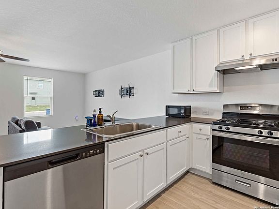Welcome to this charming two-story home nestled in the Crescent Hills - Stonehill Collection by Lennar. Built in 2024, this residence offers 4 bedrooms, 2 bathrooms, and spans 1,880 square feet of thoughtfully designed living space. Key Features: * The open-concept first floor seamlessly connects the family room, kitchen, and dining area, creating an inviting space for entertaining and daily living. The owner's suite is conveniently located on the main level, featuring a private full bathroom for added comfort. * Upstairs, you'll find a generous loft area, perfect for movie nights, a home office, or a playroom, along with three additional bedrooms offering ample space for family or guests. * Enjoy contemporary finishes, including a privacy fence, energy-efficient features, and access to community amenities such as a pool and playground. * Prime Location: Situated in Southwest San Antonio, this home is just minutes away from Lackland Air Force Base, SeaWorld, and a variety of shopping and dining options, offering both convenience and a vibrant community atmosphere.