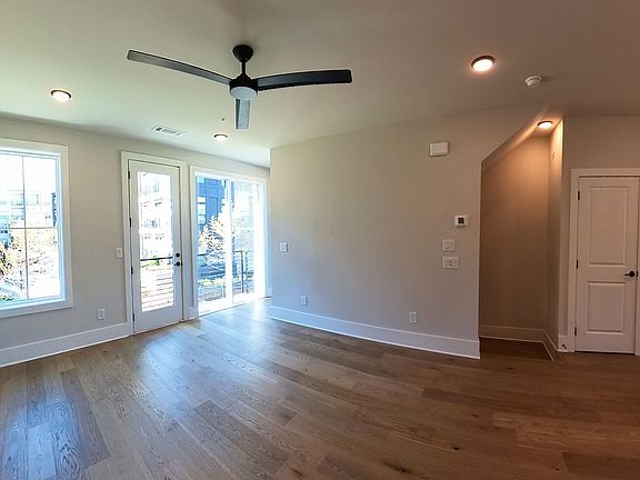 Inside, the home showcases Monte Hewett's signature craftsmanship and attention to detail. White Oak hardwood floors flow throughout the space, complemented by quartz countertops in the kitchen and bathrooms, Bell custom cabinetry, and full-height tile in the bathrooms. Designer light fixtures add a touch of elegance, while two balconies one covered with storage and one walkout extend the living space outdoors.