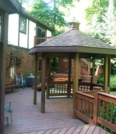 This spacious contemporary style Tudor is situated on over 2 acres with a park like setting with views from every window, the home features 4 large bedrooms, spacious kitchen and family room/Bar with sauna. The oversized deck, hot tub and sunroom are just the beginning!
