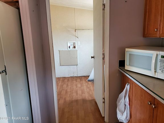 Doublewide home on 2. 38 acres. 3 bedrooms, 2 baths, dining room, family room, living area and covered front deck. Perimeter fenced, at the end of a paved road and just behind the Wilhoit store. Views of surrounding mountains. Lot is ready for your landscaping ideas. Log home style tiny shed.