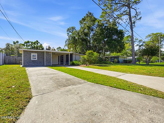 Don't miss this classic 1950s Mid-Century Modern home brimming with character, solid concrete construction and endless potential in the highly sought-after Grove Park neighborhood. Freshly painted and full of charm, this 3-bedroom, 2-bath home sits on an expansive 80 x 125 lot, offering plenty of room to grow, garden or simply relax in your own private retreat. Step onto the screened front porch for bug-free evenings or unwind on the back deck overlooking your lush backyard oasis, complete with several fruit trees, a designated garden area and a workshop, perfect for hobbies or projects. With both a converted single car garage (shed) and carport, you'll have ample storage and parking options. Updated homes in this area are commanding top dollar—making this a rare opportunity for homeowners or investors to add value, build equity, and make their vision come to life. Conveniently located just 20 minutes to UNF, shopping, Restaurants and more. This Grove Park treasure is one not to miss.
