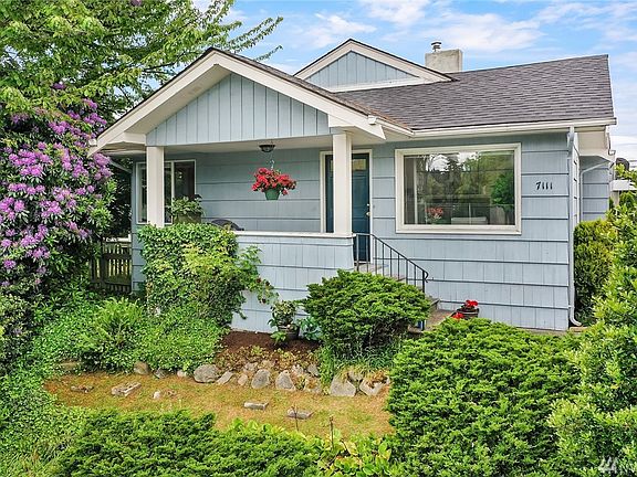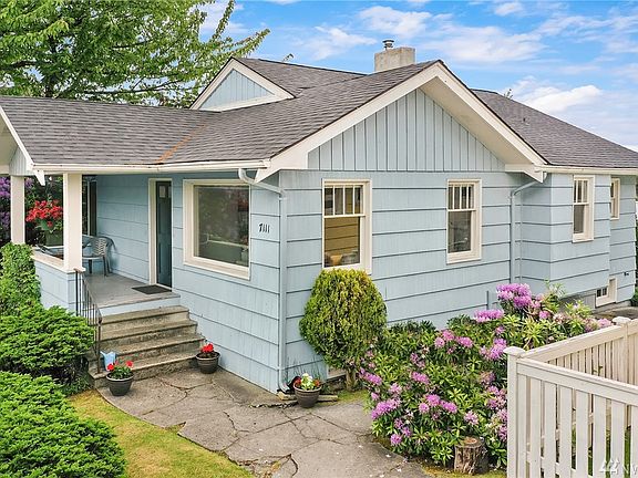 Location, Location, Location! 1922 Craftsman Bungalow located across from Froula Park with tennis courts and playground and two blocks from Roosevelt Light Rail Station. Sited on a sunny, private lot and perched above the street with views of Mt Rainier. Replete with 1,510 square feet, 2 bedrooms, 1 bathroom, kitchen with eating area, living room, dining nook, lower-level recreation/utility room and street parking. Entertain guests in spacious kitchen/dining area or enjoy a cup of coffee while gazing through antique window glass. Living room features wood burning fireplace with original brick surround, built-in bookcase, narrow board oak hardwood floors, period windows, tall ceilings and solid wood front door with window lights. Updated bathroom offers white subway tile walls, ceramic floors, black accent tiles, gray sink/tub/toilet, privacy window glass and mirrored medicine cabinet. Large master bedroom features double pane corner set windows, oak floors and window vented closet. Secondary bedroom has 2 closets, fir floors and double pane windows. Original millwork includes full wrap windows, 9" base, crown moldings and solid wood Shaker panel doors. New 2021 roof, gutters/down spouts and chimney, newer gas furnace and hot water heater, copper water lines, Romex wiring, GE electrical panel box and high-end washer/dryer. Plus, covered front porch, old growth cedar shake siding, west exposure backyard and lush landscape. Welcome home!