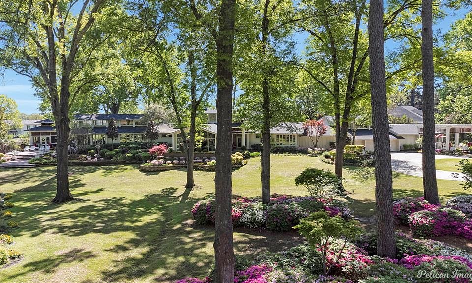 Mid-Century Modern Oasis in the Heart of Shreveport. Discover a sanctuary of elegance blending luxury with sophistication in this exquisite estate. Situated on 2.13 acres, this 4-bed, 3-bath with 2 half baths home offers unparalleled privacy and tranquility, while being just moments from premier dining, shopping & top-tier medical facilities. Entering through blue stone walkways, guests are greeted by meticulously landscaped gardens, bursting with vibrant Japanese maples & azaleas. The grandeur begins from the marble-floored entryway, leading into a space defined by floor-to-ceiling windows, flooding interiors with natural light & providing picturesque views. Custom-designed for versatility & comfort, this home features expansive living areas, three interior fireplaces & tons of storage. The primary wing is a haven of indulgence, providing its own living & dining spaces, a full gym, & a spa-like bathroom complete with walk-in closets, a huge double shower & a jetted tub. The upstairs Bonus Room offers the perfect space for unforgettable game night, along with a separate office or homework room featuring abundant built-in storage. This space could also easily be converted into a 5th bedroom, complete with spacious closet. The property's resort-style outdoor living areas are truly breathtaking. Expandable doors create a seamless flow to a 1000 sq. ft. pavilion, designed for entertaining or serene relaxation. Bask in the beauty of brick and stone pathways that guide you through landscaped terraces to private retreats, including a screened-in cottage with a fireplace and an outdoor kitchen with a private half-bath. Welcome to leisurely afternoons amidst the serene natural beauty. Whether seeking a secluded retreat or hosting grand gatherings, this estate stands unmatched in luxury and style. Indulge in the perfect blend of architectural elegance and resort-like living.