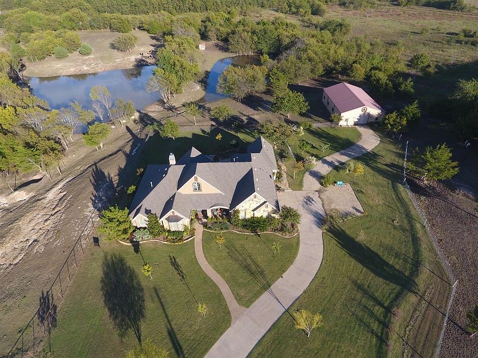 Beautiful custom, single-story home on over 13 acres nestled in the country, but close to the city. This home sits only minutes to the highway. 4 bedrooms & 3 full baths. Gorgeous views from every room! Home boasts an open concept floorplan with tall ceilings and 8' doors. Handscraped hardwood floors throughout with tile in kitchen and baths. Floor to ceiling oversized stone fireplace with gas. Property is completely fenced with pipe and cable fencing and has an automatic gate at entrance. The 40'x60' barn includes a tack room and 4 custom stalls with dutch doors. The barn has water, electrical, and an automatic door opener for easy access. The two large ponds are stocked with catfish and bass. Ag exempt.