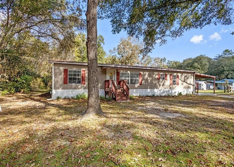This 3-bedroom, 2-bath mobile home sits on 1.38 acres across two lots, offering a combination of space, privacy, and flexibility. The main home rests on just over half an acre of land, with the second lot located directly to the left—ideal for expanding, adding a workshop, or creating a large yard or garden area. Positioned on a paved road and fenced on three sides, the property is well-suited for everyday living with plenty of room to grow. The back porch is enclosed with vinyl windows rated to withstand winds up to 120 mph, offering a secure and comfortable space to relax in all seasons. A detached shed provides extra storage for tools, outdoor equipment, or seasonal items. Inside, the home has a practical, open layout. The primary suite includes dual sinks, a walk-in shower, and a connected sitting area that works well as an office, nursery, or additional lounge space. A dedicated laundry room with counter space and storage helps keep things organized. Two more bedrooms and a second full bath provide flexibility for family, guests, or work-from-home needs. Trenton offers small-town living with easy access to the outdoors. The Suwannee and Santa Fe Rivers, as well as Hart Springs and Otter Springs, are all just a short drive away—ideal for kayaking, swimming, and weekend exploration. With no HOA, full land ownership, and a location that balances privacy with convenience, this property offers a practical path to homeownership in North Florida.