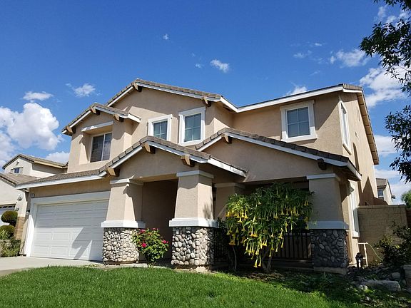 New Paint and flooring. Lovely convenient north Fontana Neighborhood! Centrally located nearby Schools, Parks and Freeway accessibility. Two story house. Double door entrance with a cemented front porch. This is a large 5 room house, 4 bedrooms and one room without closet can be used as bedroom or office. One bedroom and one 3/4 bath on the first floor. Four bedrooms, one loft and two full baths on the second floor. Upstairs loft is perfect for entertaining. Double door opening in master bedroom, master bathroom has separate shower/tube plus large walk in closet. Kitchen with recessed lights, laminate & tile flooring downstairs, laminate flooring upstairs. Attached 2 car Garage. Move in condition. Please TEXT only, NO CALLS.