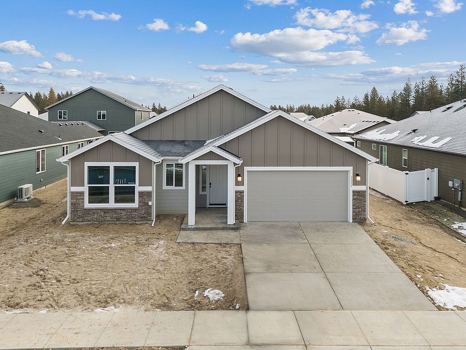 Single Level with Large Great Room and Covered Patio! Amenities include 9ft ceilings, Covered Patio, Stained Cabinets, Quartz Slab Countertops in Kitchen and Bathrooms, Stainless Appliances, Full Height 3 by 6-inch Subway Style Backsplash, Under Cabinet and Pendant Lighting, Linear Style fireplace in the Great Room, Laundry Cabinets with Sink, Laminate Plank Flooring throughout open living areas. This home is complete with full front and back landscaping, Car Charger Circuit, and Garage Door Opener(s). *Interior photos are of a similar home with the same layout but different finishes and options selected.
