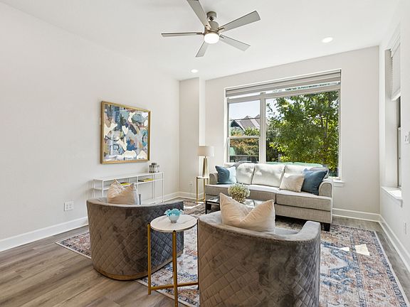 Experience stylish, low-maintenance living in this stunning 2022-built home nestled in the heart of the Enclave at Lake Highlands Town Center. Lightly lived in, this three-level residence offers an easy lock-and-leave lifestyle with HOA-maintained grounds and transferable warranties still in place. The third-floor covered balcony—facing south—offers panoramic sunset views through expansive sliding glass doors, creating an ideal setting for entertaining or relaxing. One of the few homes in the community with an oversized side yard, there's plenty of room for pets, play, or outdoor dining. Enjoy unbeatable access to nature and city life: stroll to White Rock Lake, the Arboretum, scenic trails, shops, dining, and the DART station just 0.2 miles away. Watercrest Park, with summer concerts and tree-lined paths, is just around the corner. Zoned to top-rated White Rock Elementary and Lake Highlands High, this home blends comfort, convenience, and connection.