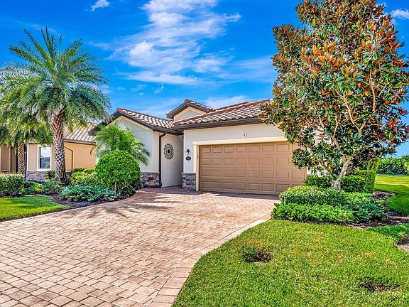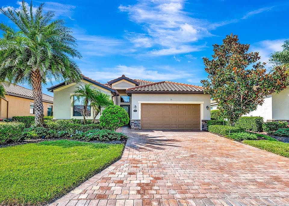 One or more photo(s) has been virtually staged. Discover the perfect blend of luxury, comfort, and a maintenance-free Floridian lifestyle in this beautiful four bedroom, three bath home tucked away on a quite dead end street in the Sanctuary at the gated River Strand at Heritage Harbour community. Built in 2016 and boasting just over 2000 sq ft this residence offers elegance and comfort. The extended paved driveway adds convenience and extra parking, while the community maintains the lush landscaping, allowing you to enjoy your home without the work. The home itself has been thoughtfully updated. Inside you will find no carpet-modern vinyl plank flooring was installed in all bedrooms in 2021, newer refrigerator purchased in 2022 and a washer and dryer added in 2023, while beautiful crown molding in every room enhances the home with a modern fashionable touch. The kitchen has been beautifully updated with an accent wall on the island, a sleek new backsplash and contemporary light fixtures in 2023. You will never worry about space in your master bedroom featuring two large closets with built-in shelving for convenience, and for peace of mind during hurricane season the property is equipped with hurricane shutters. The living room features a stylish oversized fan installed in 2023, fresh interior pains was completed in 2022. The home exterior was painted in 2024 for a modern look. The roof was recently (202) professionally soft pressure washed restoring its fresh and like-new appearance. A whole house water filtration system is another treasured feature and gives you the confidence and peace of mind that your family is enjoying the safest and healthiest water every day- an invaluable feature that adds a significant advantage to maintaining a healthy lifestyle. The extended paved lanai provides generous outdoor space, perfect for entertaining and the outdoor furniture is included in the sale. From the lanai you will enjoy a tranquil pond view with room to add a private pool id desired. The peaceful pond view from the backyard adds a daily dose of serenity and beauty, creating the perfect backdrop for morning coffee and evening relaxation. River Strand is more that just a neighborhood- it is a vibrant lifestyle with a 27-hole championship golf course designed by world-renowned architect Arthur Hills and practice facilities include aqua driving range, putting green and 2 chipping greens. There are nine Har Tru tennis courts, 6 pickleball courts and 8 pools, including two resort-style and six satellite pools with hot tubs and the main clubhouse has a resistance pool. Residents and their guests can enjoy the Shank Shack and Tiki Bar between swims, take part in popular fitness classes and biking groups, or attend social dinner events. Just minutes away are Target, Costco and fine dining, while nearby Bradenton and Lakewood Ranch have more attractions, shopping,, rated A schools and beaches. River Strand is part of a larger master-planned community that ensures a well-preserved environment and a coordinated secure setting, making this home an appealing choice for those seeking the very best of the Florida Lifestyle. Schedule the private showing today and you will not be disappointed. Living a luxury lifestyle can become your reality, all it takes is your first step to make it happen.