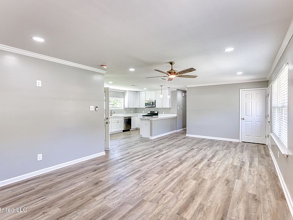 - Ceiling Fan(s), Crown Molding, Granite Counters, Kitchen Island, Open Floorplan, Pantry, Recessed Lighting