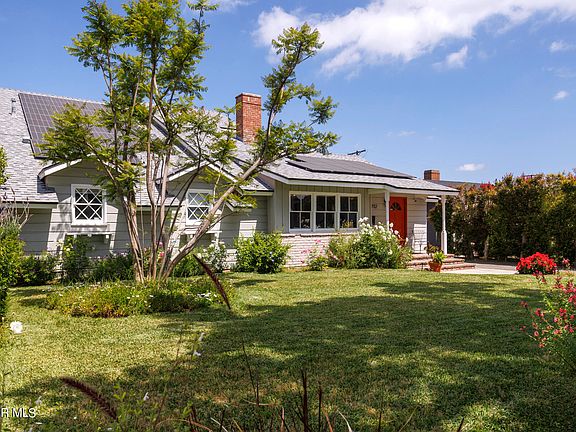 This classic New England inspired farmhouse has been expanded to create the ultimate in casual living and architectural flexibility! Originally built as a four bedroom, two bath bungalow, this home has been brilliantly remodeled adding a second floor primary suite with a luxurious bath and a massive walk in closet. Whether you need a one story home, with a huge playroom up or a multigenerational or multiple family two master bedroom solution, this incredible design can accommodate any need. As you approach, you'll enjoy the quaint charm of the slatted fenced front yard, diamond windows, painted brick, clapboard siding and exciting tangerine colored front door. Inside you're greeted by exquisite hardwood floors, a stylish vintage, mid-century fireplace and a gorgeous media wall with built in shelving. Again, the space is so flexible as it can be used as a formal dining room or living room. The kitchen has been designed with the true Chef in mind and features sleek gray shaker cabinetry with glass inserts, stainless steel appliances, a fire clay sink and a counter island to create your culinary masterpieces. The room opens up to a glamorous glass tiled raised hearth fireplace, beamed ceiling and a perfect wall for as large a television as has ever been invented. This unique floor plan features two bedrooms and one bath on each side of the home, so no matter what your family needs are, the options are endless. Multiple offices, a nursery, craft room or just a bunch of bedrooms, the first floor is simply ideal. When you reach the second floor, the possibilities are equally infinite. Whether you want a glamorous Hollywood primary suite or a rumpus room for the kids, the second floor does it all. Gorgeous wood floors, stunning lighting and renovated baths will leave you speechless. And don't forget the covered patio, delicious orange tree and the detached garage which features a sliding glass door for even more usable space. It is rare to find this kind of design flexibility at any price, one that works for virtually any family living situation. Money saving additions include a newer electrical panel and roof, low cost solar panels and artificial turf. Nestled on a tree lined street, with parks, schools and shopping minutes away, you quite literally have everything Southern California has to offer, at your fingertips.