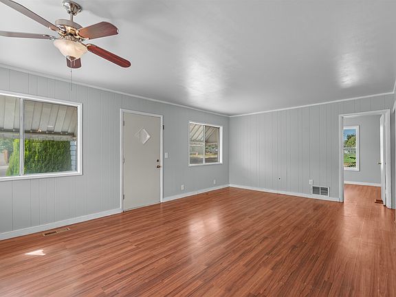 Charming ranch-style home on nearly one acre, offering 2 bedrooms, 1 bath, and a partially finished basement with potential for added living space. Built in 1938, this property features a level, fenced lot with room for animals, RV parking, and outdoor use. A highlight is the oversized heated 46×30 shop with a true 3-car setup, one bay in front and two on the side, complete with concrete floor and roughed-in bathroom, ideal for projects, storage, or hobbies. Updates include a newer electrical panel and wiring. Interior amenities include gas-forced air heat, wall-unit cooling, microwave, and range. The basement adds unique functionality with a hidden storage room behind shelving. Located in Spokane School District 81, this home offers space, utility, and opportunity in a convenient North Spokane setting.