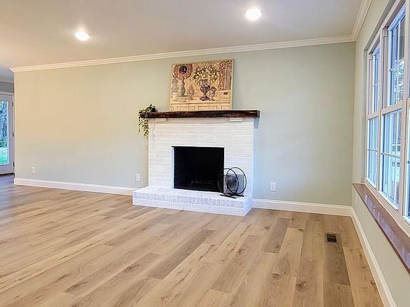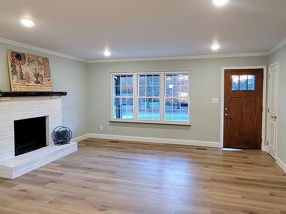 Beautifully updated 3-bedroom, 2-bath brick rancher on a spacious .58-acre lot! This 1,304 sq ft home, originally built in 1960, has been completely refreshed with modern finishes throughout. Step inside to an open-concept living area featuring new flooring, elegant crown molding, and a cozy wood-burning fireplace. The stunning kitchen boasts quartz countertops, and island, with all-new stainless steel appliances.