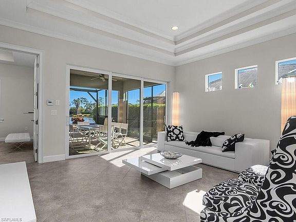 Honeysuckle floor plan, one of the larger plans offered, with a Center Island Kitchen, White Cabinetry, Quartz Countertops, breakfast bar, tile flooring. One of the best lot locations in ICP. Long lake views, oversized lot. Pool and Spa, Screened-Lanai overlooking a beautiful water view. Crown molding. High end furnishings, with a Coastal color palette throughout, very neutral. High end fans and fixtures. Impact doors and windows. Roomy Den/Office offers a Bay Window Style bump out. Huge separate Laundry Room, sink upgraded washer and dryer. The lanai is wider in the Honeysuckle compared to other plans, the master bath is larger than other plans as well. This home has been occasionally occupied and looks like new. The Isles has been developed on over 2400 acres 1300 of which are dedicated to Natural Habitats. Residents enjoy Luxury Amenities at the Isles Club which was modeled after the original Naples Beach Hotel of the late 1800's! The Overlook Bar and Grill is located on the water's edge. Pickleball and tennis and bocce ball courts, Kayaks and Paddle boards are provided. There is a lap and community pool and spa, sauna, modern full size gym, yoga and more! ICP is ideally located less than 5 miles from downtown 5th Ave and the beaches, combined with Low HOA fees make this one of the premiere locations in all of Naples.
