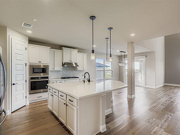 High ceilingsOffice or flex roomStainless steel appliancesFamily room with patioSoaring ceilingsCrown moldingLarge center island