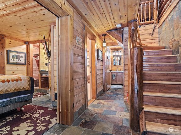 Welcome Rustic Luxury in this Mountain Retreat! Meticulously maintained 'True Log Homes' cabin in Glacier's Snowline gated community. Fully finished Log Cabin w/ interior & exterior chinking & staining. Perfect full-time cabin living, personal getaway or short term rental investment. 2 beds, 2 baths + office + bonus room downstairs, open main floor great room. Updated kitchen w/ granite counters SS appliances, hickory cabinets, mix of slate & oak flooring throughout. Flat driveway, potential to add garage. Large cedar deck & large jacuzzi hot tub for more outdoor fun! Manage your cozy cabin temp w/propane & wood stoves options w/ceiling fans. Snowline amenities: pool, clubhouse, play/sports area, tennis courts, & full time manager/security.