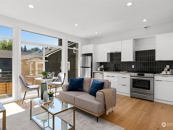 Potentially the most charming compact luxury home in West Seattle. This Attached home has it's own entry, fenced yard and designated parking space plus all of the modern features one would expect in new construction. A well designed open concept Great Room featuring a fully appointed kitchen w/quartz counters, stainless appliances, gas range, high-quality finishes, w/mini split A/C and powder room are highlighted by the room's full width balcony which fills the space with light. Upstairs, there are 2 bedrooms and a full bath with finishes found in much more expensive homes. A fantastic opportunity for a first time buyer, part time resident or a first time investor.