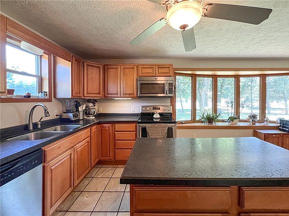 Across from Green Acres you will find this 4 bed 3 bath ranch home sitting on over 4 acres! With a little TLC this home has so much to offer including an updated kitchen, spacious living room with built ins, lots of closets, large primary bedroom and bathroom that opens to the deck overlooking the heated pool. The walkout basement offers a 4th bedroom, family room, rec room, laundry, and the 3rd bathroom. Outside is a large fenced area along with a 4 car detached garage, and a 3 car detached garage with a heated and cooled workshop area. 2yr old roof, 5yr old furnace & a/c.