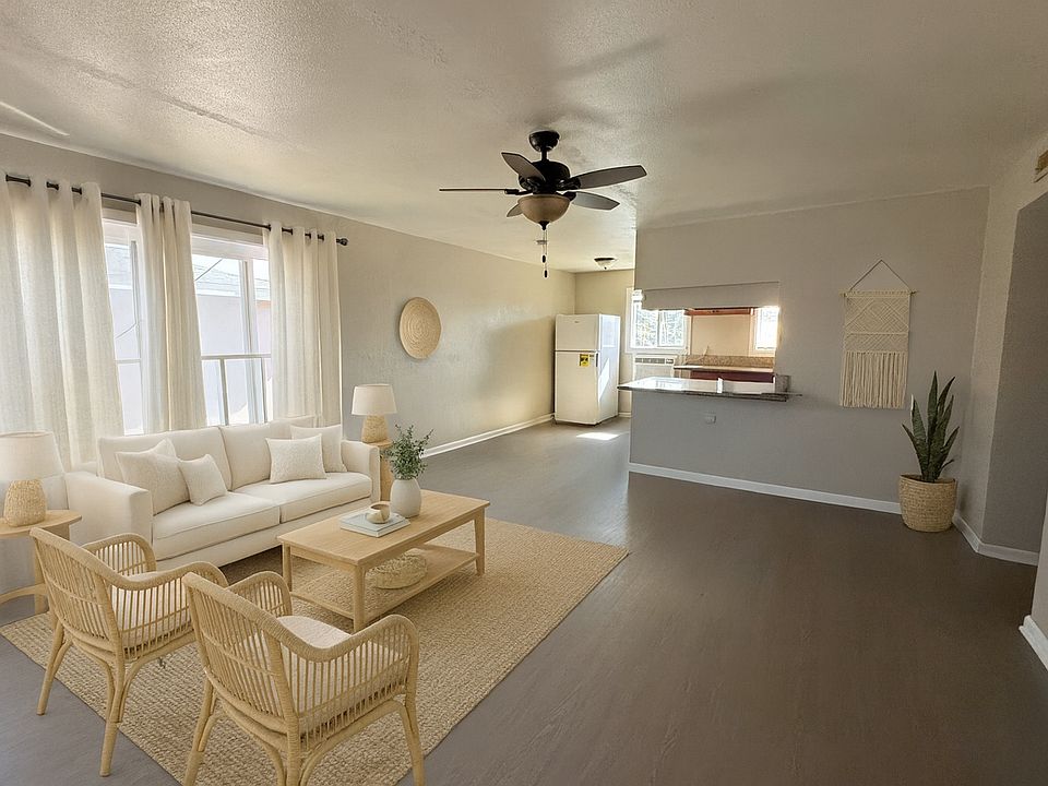This bright and spacious home features an open-concept living room, a large kitchen with ample cabinet space, refreshed bathrooms, and generously sized bedrooms with great natural light throughout. With a warm, comfortable layout and a peaceful location close to shopping, dining, and easy freeway access, this move-in-ready unit delivers the perfect blend of style, convenience, and everyday comfort.