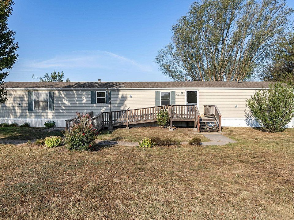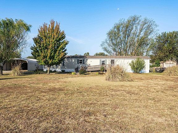 Looking for a cozy property on a .95-acre lot? We’ve got it! As you walk up the long driveway, appreciate the landscaped front yard and plenty of parking space. The double car carport attached to an elongated one car garage is great. The garage has power, overhead lighting, concrete floors and a workbench, too. There are two additional sheds on the property for storage and one big enough for a riding lawnmower. The walkway to the home offers a patio and deck with a wheelchair ramp. Step inside and admire the vaulted ceilings and spacious rooms, it’s really been well maintained and is clean! The living room has a built-in entertainment center and large windows to let in natural light. Next stop is the kitchen complete with a GE stove/oven and Amana dishwasher. We love all the cabinet space and don’t miss the storage under the island. There is space for barstools and eating at the island and space for a table. Just past the built-in desk and laundry area is the primary suite. The bedroom is spacious, and you can’t miss the roomy walk-in closet. Walk through the double doors to the primary bath with a large soaker tub and separate shower. There are 2 other bedrooms and 1 full bathroom on the other side of the home. The backyard is fully fenced with double gate. Property line extends beyond the back fence to the other side of the ditch to the tree row. The property is just miles from Derby and Haysville and all it’s shopping and convenience options. Plus, a quick drive to the turnpike. Come see this property in real life!