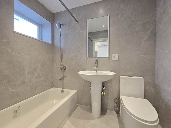 Brand New 1br 1bath high ceiling apartment with luxury, high-end interior finishes. This apartment features spacious closets and ductless mini a/c system and separate eat-in-kitchen and living room area. Modern kitchens and bathroom with high-end appliances that includes washer & dryer combo and dishwasher. Convenient access to N-Train Bay Pkwy, buses, Bay Pkwy Business District and much much more. Income verification is required and a credit check is needed. Good credit score is required. Please text Ziqing (Zoey) Chen/Michael Mui for a tour.
