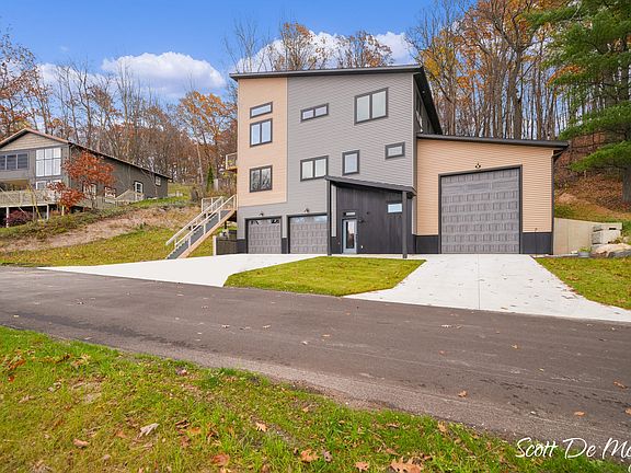 Why settle for a small outdated waterfront cottage as a second home, when you can own a massive 3052 Sq. Ft. 4 bedroom/ 4 full baths, new waterfront home and enjoy lake life full time on Big Pine Island Lake? Watch the sunsets with 100 feet of stunning private waterfront on this 223 acres all sports lake. Includes a new lake dock, which you will enjoy a sandy beach that also includes a nice sandy firm lake bottom for lake activities. This home has it all, with quality new construction and amenities in mind. On almost ¼ of an acre parking is not an issue. Includes an insulated and finished attached 2 stall garage(depth of 4), plus an additional massive 30 x 20 extra garage stall that you can park your boat or RV in. Another major perk is that all the garage stalls are prepped for heat. No shortcuts in quality building materials here with 2' x 6' construction, foam insulation and Anderson Windows. The amenities list continues with CertainTeed siding, GAF architectural shingles, Trex composite decking, heated bathroom floors(2 upper), CraftMaid cabinets, 2 laundry rooms, mini bar, fire pit, CCTV security camera system and so on. With an open floor plan and ceiling heights up to 14 foot, this home is a must see. If the possibility of short term rentals interests you, the home is in short term rental friendly Grattan Township(permits are limited). Less than 35 minutes to downtown Grand Rapids, this home's location is very commutable to the best West Michigan has to offer.