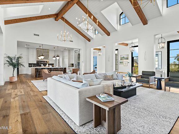 Fully furnished desert oasis in Paradise Valley! This stunning Sticks and Bricks Development and MDY Design collaboration offers 360-degree views of Camelback Mountain. Step inside this exquisite estate with high ceilings, wooden beams, and copious amounts of natural lighting from the skylights, large windows, and sliding glass wall. Perfect for hosting, with a 4 bed/6 bath main house and 1 bed/bath guest house ready for visitors. Home has wood flooring throughout, chef's kitchen with high end appliances, kitchen island, floor to ceiling wine fridge, and formal dining room. Sitting on over an acre lot the primary suite features mountain views, private entrance to the backyard, gas fireplace, laundry, dual vanities, toilets, closets, and separate steam shower and soaking tub. Additional features include office, double laundry units, and a 4 car garage. Entertain family and friends in the custom pool and spa with expanded pool deck, built-in BBQ, and covered patio with a wall of sliders that opens to the great room. Located near Arizona's top resorts, golf, dining, and shopping.