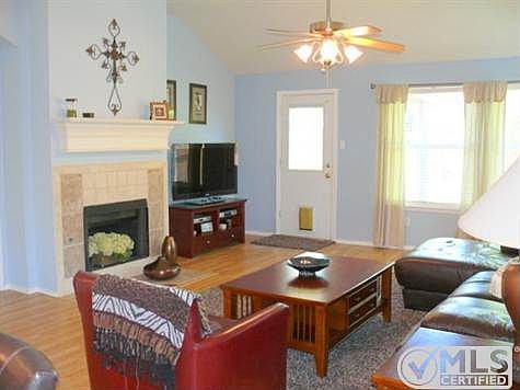 Beautiful open floorplan in this one-story brick beauty with designed landscaped beds & mature trees in the private back yard that also has a huge covered patio! Meticulously maintained.Graceful archways & vaulted ceilings. Kitchen offers ample cabinets,pantry, work space & gas range. Fridge stays! Big family room with gas log fireplace is open to large breakfast area with breakfast bar for stools--all open to the kitchen. Separated for privacy, the spacious second living room could make a perfect library, music room or home office. The luxurious master suite has a bathroom with garden tub, separate shower, dual sinks in the vanity & a large walkin closet. Guest rooms are secluded with a large full bathroom.