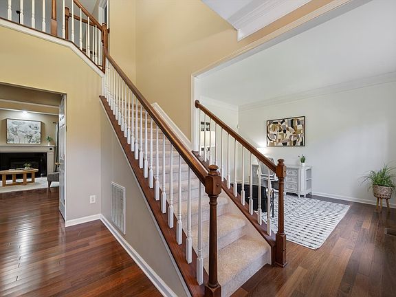 This stunning home offers the perfect blend of privacy, space, and style. Featuring a well-designed layout with two dedicated office spaces and a spacious two-story living room with a cozy gas fireplace, it’s ideal for both work and relaxation. The main floor boasts beautiful Brazilian Teak hardwood flooring, while the upper level has brand-new carpet throughout. Enjoy ultimate seclusion as the home backs to a serene green space—best appreciated from the private, covered deck where you can unwind to the peaceful sounds of nature. The generous eat-in kitchen is a dream for entertaining, complete with granite countertops, an island, pantry, and abundant cabinet space. It opens seamlessly to the expansive living area, filled with natural light and stunning views. The private primary suite is a true retreat, tucked away from the other bedrooms and bonus room. It features a vaulted ceiling, dual walk-in closets, and a spacious en-suite layout designed for entertaining.