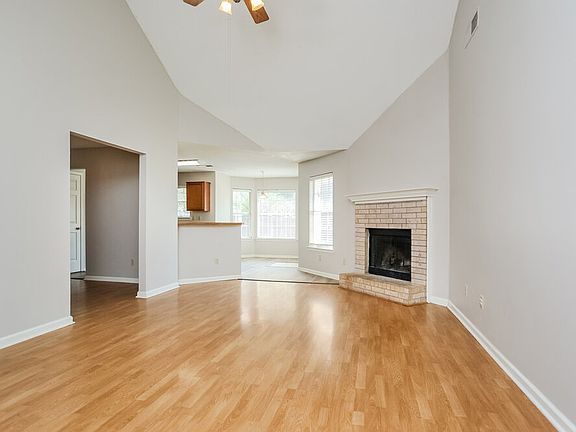 Cute single family home with 1,437 square feet is now available. Home features: 3-bedrooms, 2-bathrooms, ceiling fans throughout, living room with a masonry fireplace and vaulted ceiling. The open eat in kitchen has a pantry and double sinks. There is a laundry room. Master bed and master bath with a separate walk-in shower and tub. Exterior includes a backyard with patio and 2-car garage. Homes this well-maintained and move-in ready lease quickly. Schedule your tour and submit your application today.