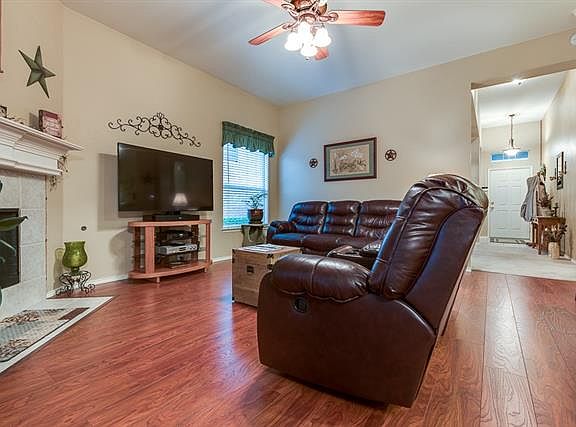 Immaculate home sits on a landscaped lot in South Denton! Guyer High School! Two living areas, two dining areas, wood floors, gas log fireplace, high ceilings, open floor plan, and great location! The elegant formal living and dining areas are perfect for entertaining or could easily be used as an office space! Spacious master with private bathroom and WIC! A wood fence surrounds the large backyard, completed with a covered patio! Must see!