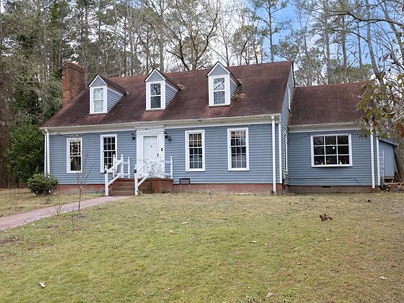 Welcome home to this secluded and charming Cape Cod-style retreat, nestled in the woods on 1.64 acres just off Sunset Lake Road. Surrounded by nature, this property offers a peaceful and serene setting with exceptional privacy. NO HOA. The home features a large dining room and an open floor plan with a spacious family room highlighted by a brick, wood-burning fireplace. Additional living space includes a separate living room and a well-appointed kitchen with island, granite countertops, tile backsplash, and stainless-steel appliances. A lovely bay window provides picturesque views of the rustic natural surroundings. The first-floor primary bedroom offers convenience and comfort. Upstairs, you'll find two large bedrooms, along with a hobby room and an additional flex room (unheated), offering versatility for storage, creative space, or future customization. The unfinished basement includes a second wood-burning fireplace, utility area, and both interior and exterior access—ideal for expansion or workshop potential. Outdoor features include a covered carport/patio, with playset and storage shed conveying (as-is). Chickens are allowed, adding to the property's homestead appeal. The property is located in a flood zone and requires flood insurance; there is no indication the home has ever flooded. A rare opportunity to enjoy privacy, acreage, and classic Cape Cod charm in a tranquil setting.