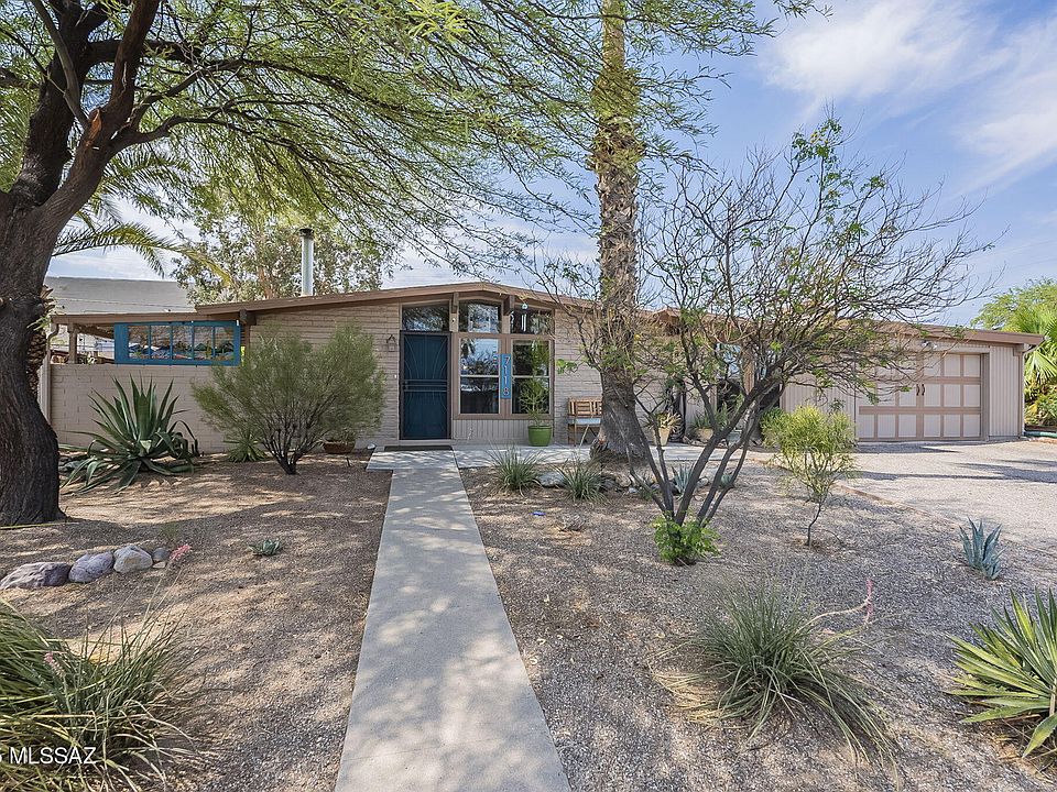 Beautifully maintained and updated mid-century modern home offering timeless charm and modern updates. Featuring 3 bedrooms , 2 baths & an office/flex room. Gorgeous updated kitchen with a large quartz island/ breakfast bar, sleek new appliances, and ample cabinetry - perfect for daily living and entertaining. Enjoy relaxing in the private backyard with a spa and mature, fruit-bearing trees, creating a serene oasis. The property also includes a shed and an attached garage for convenience. This move-in ready home blends style, comfort, and practicality - all within close proximity to schools, shopping, and parks.