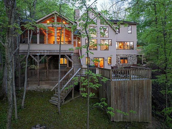 BREATHTAKING WOODED HILLTOP LODGE ON 1.81 ACRES! Very rarely does a home property like this come to market & even fewer with these updates and features! Follow the winding wooded drive to the home & from the moment you pull up, you will see just how special this property is! Enjoy the panoramic views of nature, acres of trees & Mud Creek from large decks on each level & a stunning screened-in porch! Offering nearly 6,800 square feet, this 5 bedroom, 3.5 bath home will captivate you & make you feel like you're in Brown County! The entryway leads to a large great rm w/a soaring 35' ceiling & gorgeous fireplace w/stone from the floor to the ceiling! The main level also offers a beautiful dining rm, recently RECENTLY FULLY UPDATED KITCHEN w/center island, pantry & custom built-in benches, a living rm & the owners suite w/two story ceiling, loft access, large WI closet & luxurious spa bath w/dual vanity & large WI shower! The upper level features a loft (perfect for a bedroom, office, lounge area & more), two secondary bedrooms & full bath! The FINISHED WALKOUT LOWER LEVEL boasts a bar/rec area, family rm w/fireplace, lounge area, 5th bedroom, full bathroom & huge storage rm! Wooded views from literally every room in the home! There is simply nothing on the market today that is remotely close to this property! Although it will feel that you're a million miles away from the hustle and bustle, you're still just a few minutes from Geist Reservoir, shopping, dining, schools, the interstate & so much more!