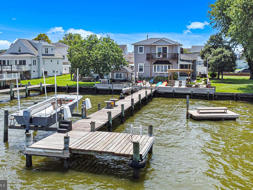 Gorgeous panoramic river views from this spacious two story home. Newly remodeled kitchen with plenty of storage, marble counters and elegant flooring. Beautiful hardwood floors throughout the main level. A separate dining room with a fireplace has a setting for cozy fall gatherings. The large family room has wonderful views of the bay overlooking Back River, Ballestone & Wildwood Beaches. Natural light in this home is abundant. The laundry area is located just off of the living room on the main level. Rounding out the main level are two spacious bedrooms and a full bath. Amazing 2nd story primary suite with like views of the river and a balcony with panoramic views. Primary bath has massive walk in shower and no lack of vanity space. The lower level of the home is no let down when it come to storage space. Its waterproofed and has access to the 2 car oversized garage. The outside of the home is a vacation style setting with covered beach style seating area, fire pit and even has a crab shack/boat house style out building. The pier has electric service and boat lift. AC is 6 month old, Boiler is 2 years old. No need for vacations when living in this waterfront beauty!!!!