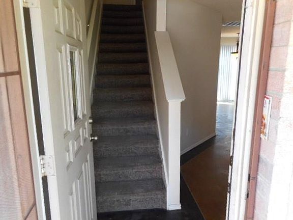 Great home with stained concrete downstairs. Two spacious bedrooms, efficient floor plan, plenty of cabinets, window coverings, separate utility room, large fenced backyard with patio and storage building. Window unit in garage. Check it out! AGENT AND INTERESTED PARTIES: PLEASE REVIEW APPLICATION REQUIREMENTS IN MLS TRANSACTION DESK