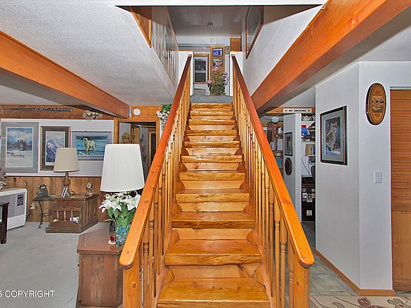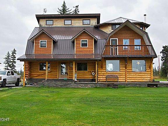 Hankering for a homestead feel with a beautiful natural log home and a shop that is truly over the top? This home has been so immaculately cared for and it just feels sooooo comfortable. Logs from the property were cured and used to build the home adding wood accents throughout. A great layout with big living area and kitchen on the main level and bedrooms upstairs. 8+ acres of PRIVACY and VIEW!As you approach this home at the end of the road, you know you are in for a treat. Stone accents, trex decks and walkways, beautiful well maintained logs...yes this is nice. The Seller is retired and would prefer to include almost all of the furnishings so this could be a "bring your suitcase and move in home." Lots of room to entertain and spread out on the main level. AND lots of windows that let in so much natural light. Did I mention Cook Inlet views as well? Second level features a BIG master suite, two other bedrooms and full bath. And a surprise third level, with 2 more bedrooms and plumbing stubbed for a third bath. The detached shop is a dream come true for woodworker, hobbyist, etc. Plus there is a huge upper area that could be converted for whatever your heart desires. the shop features in floor heat and foam insulation, so you can work out there in any season. Septic system is non conforming and will not meet ADEC requirements. It is a 1500 gallon septic tank and a buried 80 foot long, 20-24 inch radius, perforated culvert. It has not had any issues for the property owner. The acreage is flat, the garden is lovely and there is plenty of room to park all of your toys. Come see why this has been such a great home and now it can be yours!