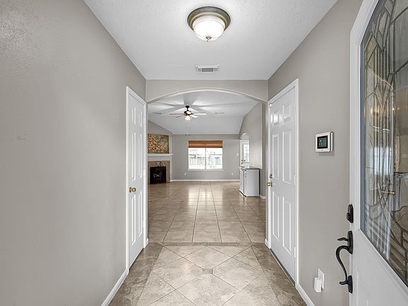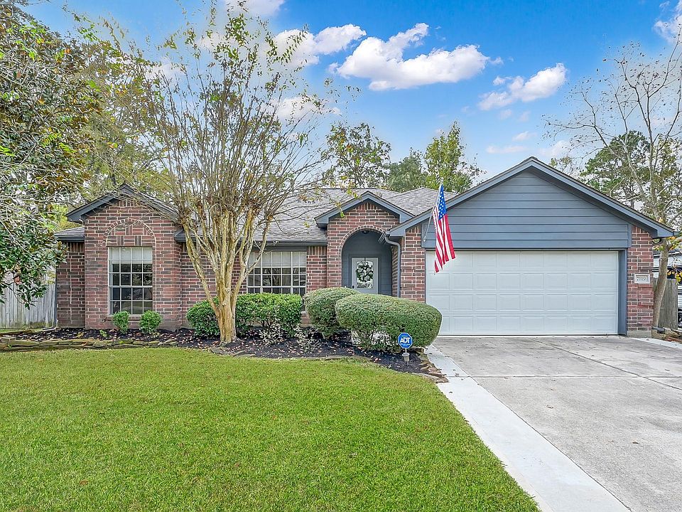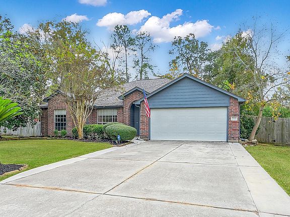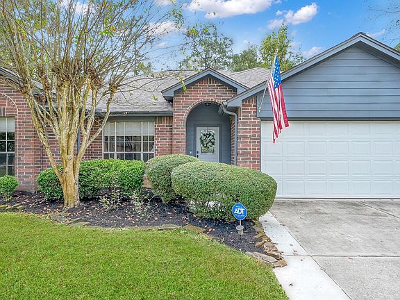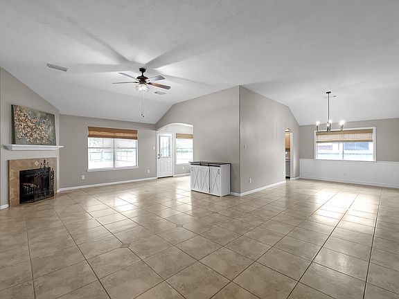 This fantastic four-bedroom ranch-style home is move-in ready with great updates and an easy, welcoming vibe. With no carpet, it offers low-maintenance living and a clean, modern feel. The extra-large living room with a cozy corner fireplace flows into the formal dining room and kitchen, making it perfect for gatherings. The kitchen features GE appliances and a handy walk-in pantry. Step outside to an oversized covered porch and patio on a 12,000 SF lot—plenty of room for running, playing, and entertaining—plus a fully fenced backyard with a storage shed. Major updates include a 2023 roof and 2021 AC, along with refreshed window treatments, irrigation upgrades, patio shades, driveway expansion, and a refreshed walkway. With a functional floor plan that’s great for hosting yet comfortable for everyday life, this home also offers lots of windows for natural light, a smart thermostat, sprinkler system, and Ring doorbell. Low taxes and zoned to Magnolia schools—make this one home today!