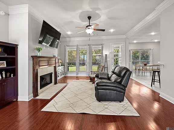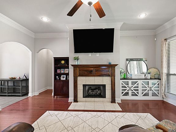Great 4 bedroom home in desirable Audubon Lakes Sub in the Zachary School District. Upon entering you will have a formal dining area to your right and it is open to the spacious living room straight ahead. The living room features a charming fireplace, wood floors, a wall of window to allow for natural light and overlooks the backyard area. Adjacent to the living area is the nice size kitchen and breakfast area. The kitchen features stained wood cabinets, granite countertops, s/s appliances, gas cooktop, panty and a breakfast bar. A hall towards the front of the home close to the kitchen will have your laundry room, garage entrance and a nice drop-off area with hooks for jackets or bookbags. On the right side of the home off the breakfast/kitchen area you will find 2 bedrooms and a full bath down stairs as well as stairs leading to the 4th bedroom and a full size bathroom. The master is on the opposite side of the house and has an en suite bathroom and large walk-in closet. The patio area is nice with a view of the backyard area that backs up to trees for added privacy. This home is a must see!
