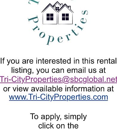 Posting for Tri-City Properties. All inquiries can be emailed to Tri-CityProperties at sbcglobal dot net . Check out more information at www tri-cityproperties dot com.