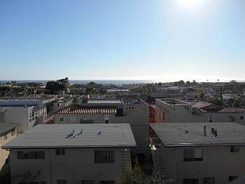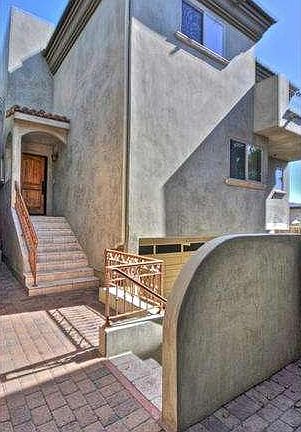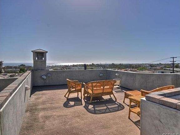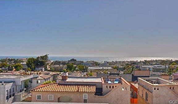 Panoramic views from inside and outside this detached rear unit situated just a few blocks from the beach. Travertine covers the majority of the main level while beautiful 5" Brazilian Cherry floors canvass the upper level. Two large bedrooms, a full bathroom and laundry are located on the main floor along with the master suite featuring a gas fireplace, built in shelving and desk and an en suite with spa tub and separate shower. The panoramic ocean views are visible from the entire upper floor....stand at the island and prepare a meal with the majestic Pacific Ocean on the distance. Enjoy the ocean breezes from the 2 outdoor balconies flanking both sides of the family room or head up to the roof deck for even more views.