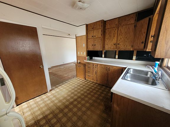 New to the market! This single story home includes dining/living room, kitchen, 2 bedrooms, and full bath. Basement is unfinished with newer forced air furnace (2021). Detached double garage with opener, storage & workshop area. Property has new sewer line from house to street installed last year. This property needs TLC and is being SOLD AS IS. Great property for a handyman or investment property!