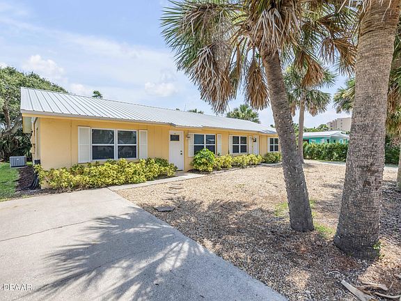 Beautiful beachside Duplex! Each side has 2 Bdr, 1ba, living room, kitchen, back patio, laundry room, and spacious back yard (total of 4bdrs, 2ba). This is a concrete block structure with a metal roof. Great investment and easily rented as it is across from the city owned tennis courts and playground, a block to the beach, and only a couple blocks walk to Flagler Ave shopping, dining and entertainment. Easy to view, here is a great opportunity to have monthly income! Beach walkover is about 1 1/2 blocks east. This is a perfect location for 30 day or longer term rentals or live in one side and rent out the other.